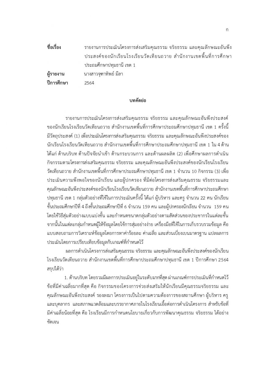 ผลงานวิชาการโรงเรียนวัดเทียนถวาย