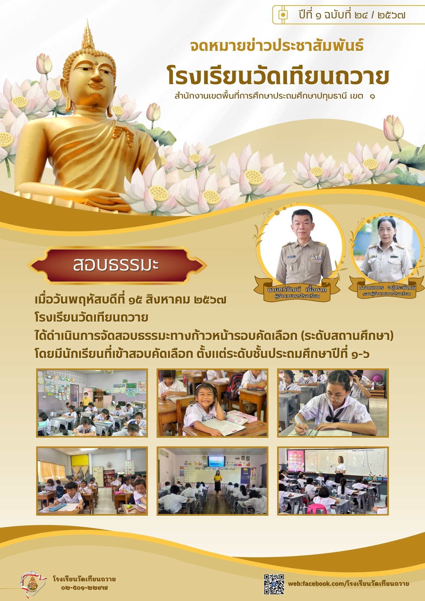 โรงเรียนวัดเทียนถวาย ได้ดำเนินการจัดสอบธรรมะทางก้าวหน้ารอบคัดเลือก (ระดับสถานศึกษา)