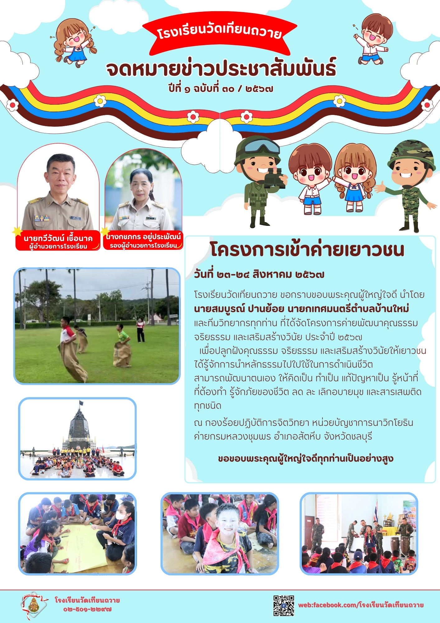และทีมวิทยากรทุกท่าน ที่ได้จัดโครงการค่ายพัฒนาคุณธรรม จริยธรรม และเสริมสร้างวินัย ประจำปี ๒๕๖๗