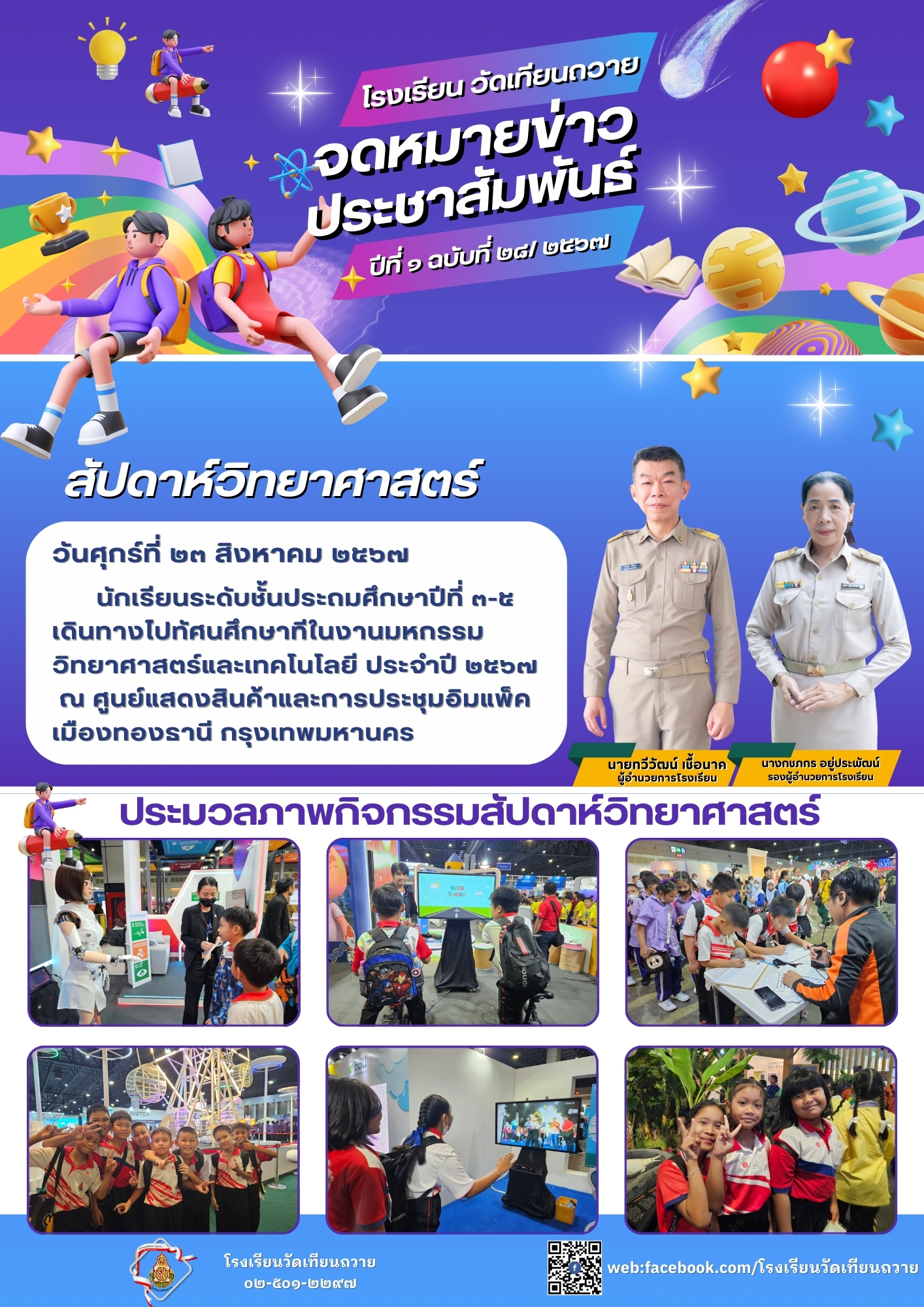 นักเรียนระดับชั้นประถมศึกษาปีที่ ๓-๖ เดินทางไปทัศนศึกษา ณ พิพิธภัณฑ์พระรามเก้า พิพิธภัณฑ์วิทยาศาสตร์และเทคโนโลยี