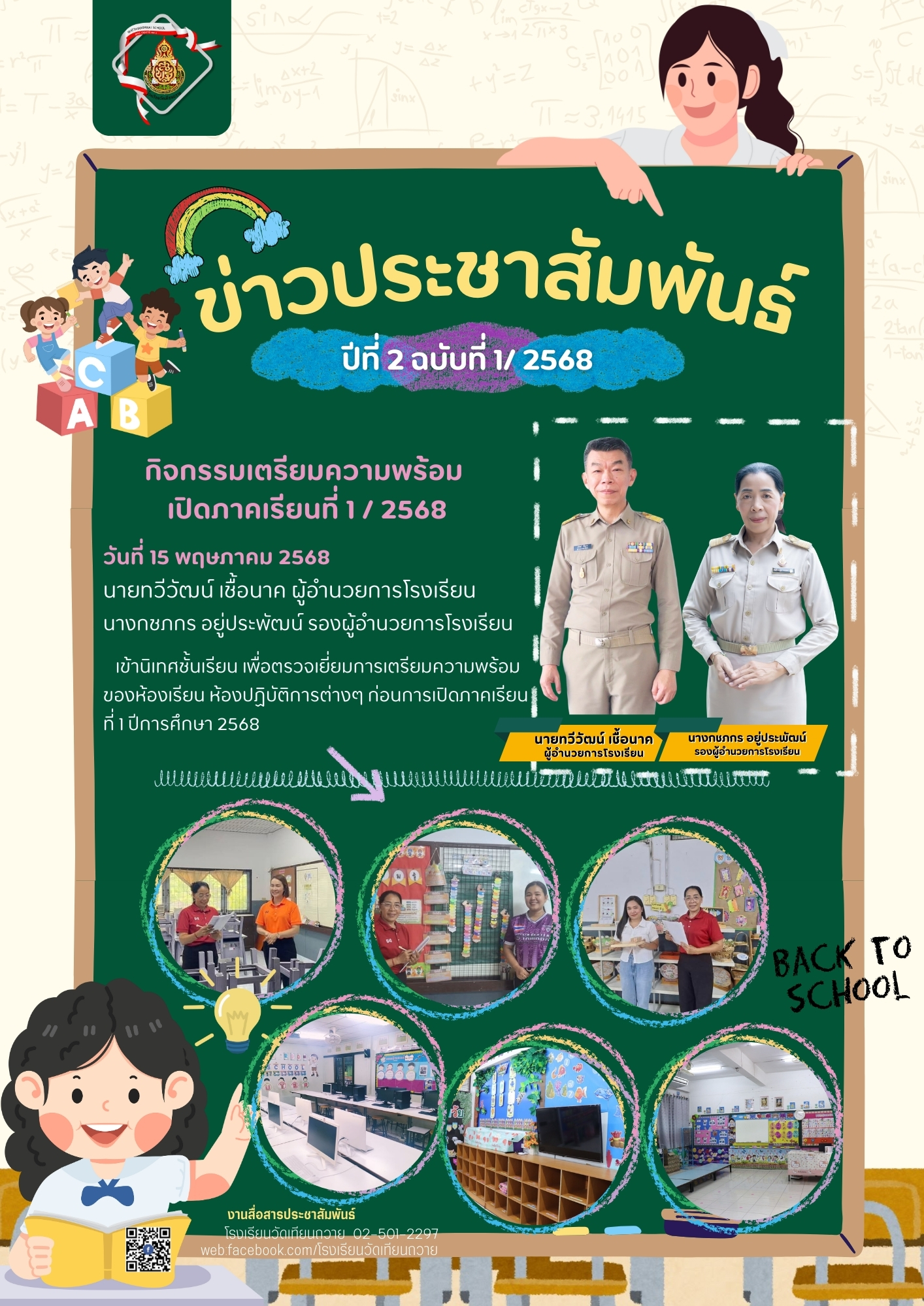 เข้านิเทศชั้นเรียน เพื่อตรวจเยี่ยมการเตรียมความพร้อมของห้องเรียน ห้องปฏิิิบัติการต่างๆ ก่อนการเปิดภาคเรียนที่ 1 ปีการศึกษา 2568
