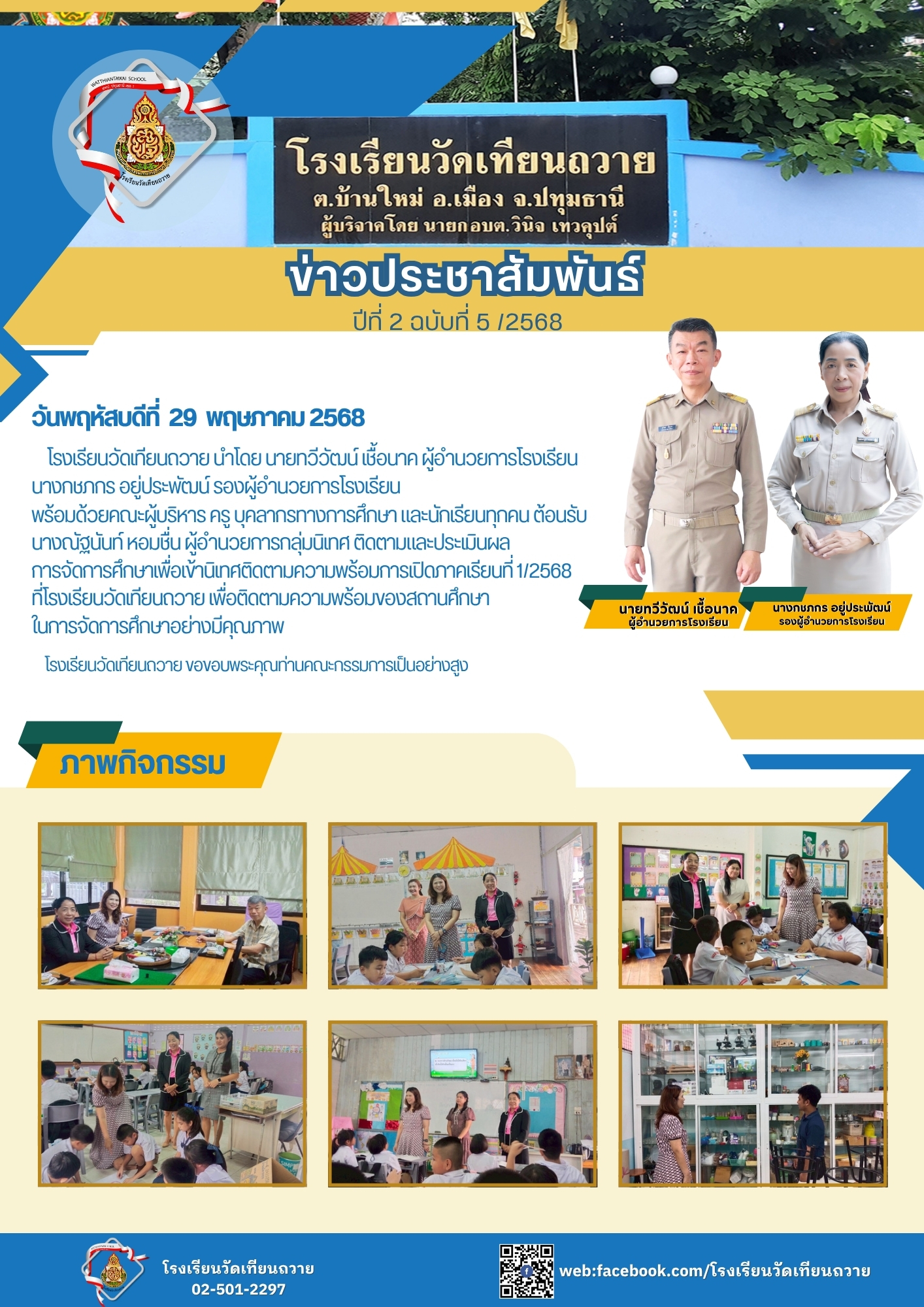 ที่โรงเรียนวัดเทียนถวาย เพื่อติดตามความพร้อมของสถานศึกษา